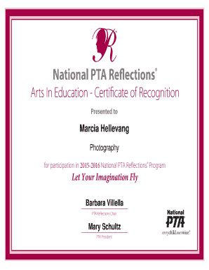 No need to install software, just go to dochub, and sign up instantly and for free. The pta reflections certificate is an award given to students who participate in the national pta reflections program. National parent teacher association | national pta Edit, sign, and share pta reflections certificate online.